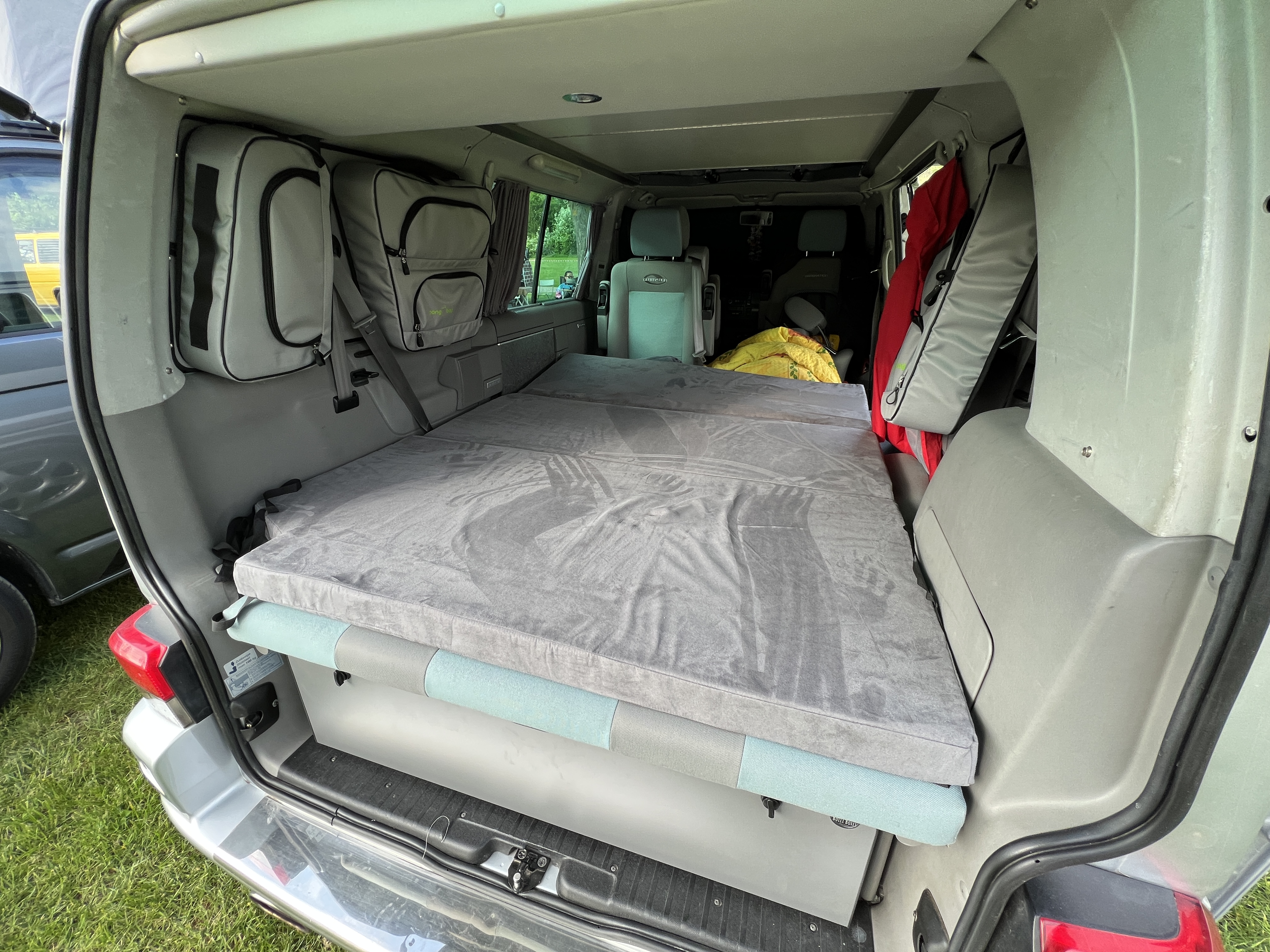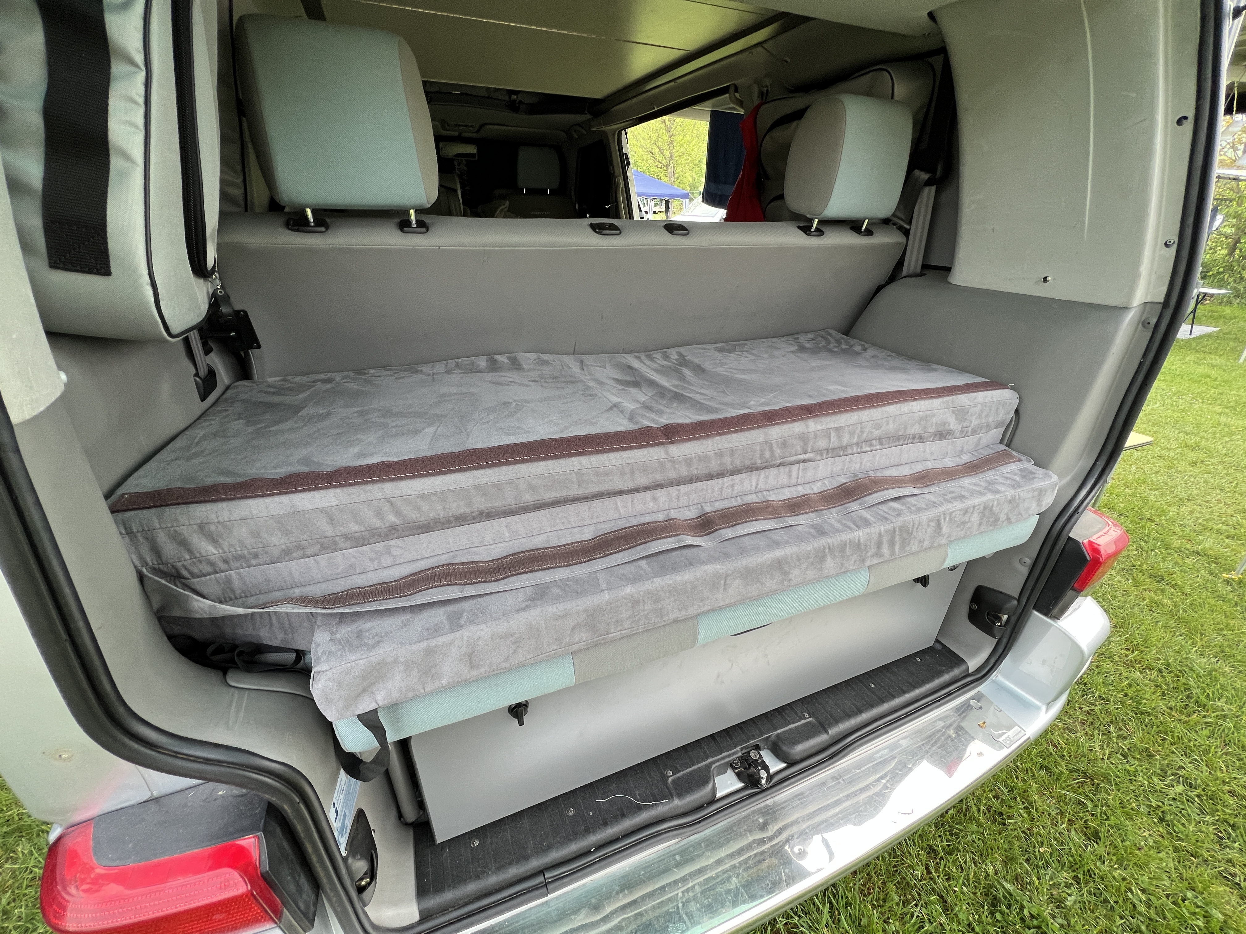 Diese passt sich der Multivan Rückbank auf der Unterseite an und oben hat man eine durchgehend grade Liegefläche.